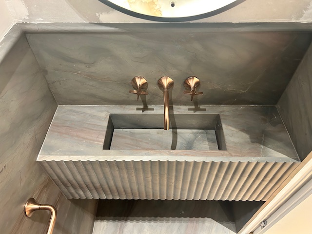 Chaque matière est validée (revêtement, épaisseurs, joints). - Les relevés terrain sont analysés. - Le design est validé ou ajusté si nécessaire. Précision : L’architecte est responsable du rendu esthétique, Leader Revêtement est responsable des cotes, de la faisabilité et de l’implantation réelle.