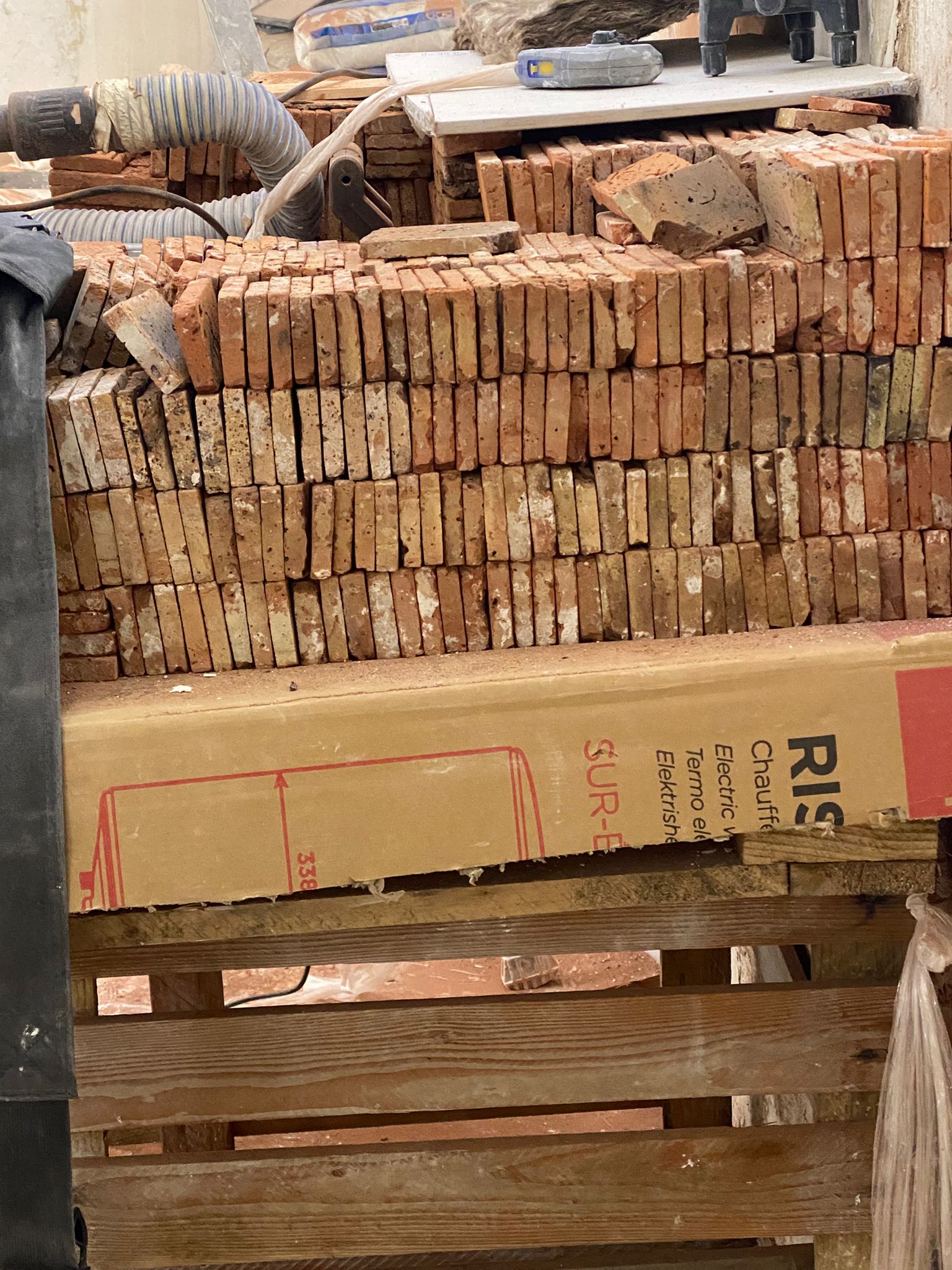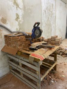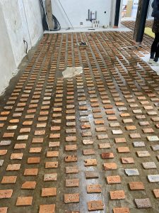 Nous réutilisons les matériaux issus de démolitions ou de chantiers de rénovation : tomettes, briques, pierres anciennes, bois, etc.
